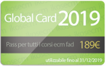- La Global Card è valida fino al 31 dicembre 2019. Entro questa data puoi iscriverti a tutti i corsi che desideri e completarli per ottenere i crediti ECM. Ti consigliamo di verificare anche le singole scadenze di ciascun corso prima dell'iscrizione.